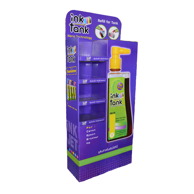 1. It is a floor display stand cardboard display rack for ink tank, sized at L400XW300XH1300mm.